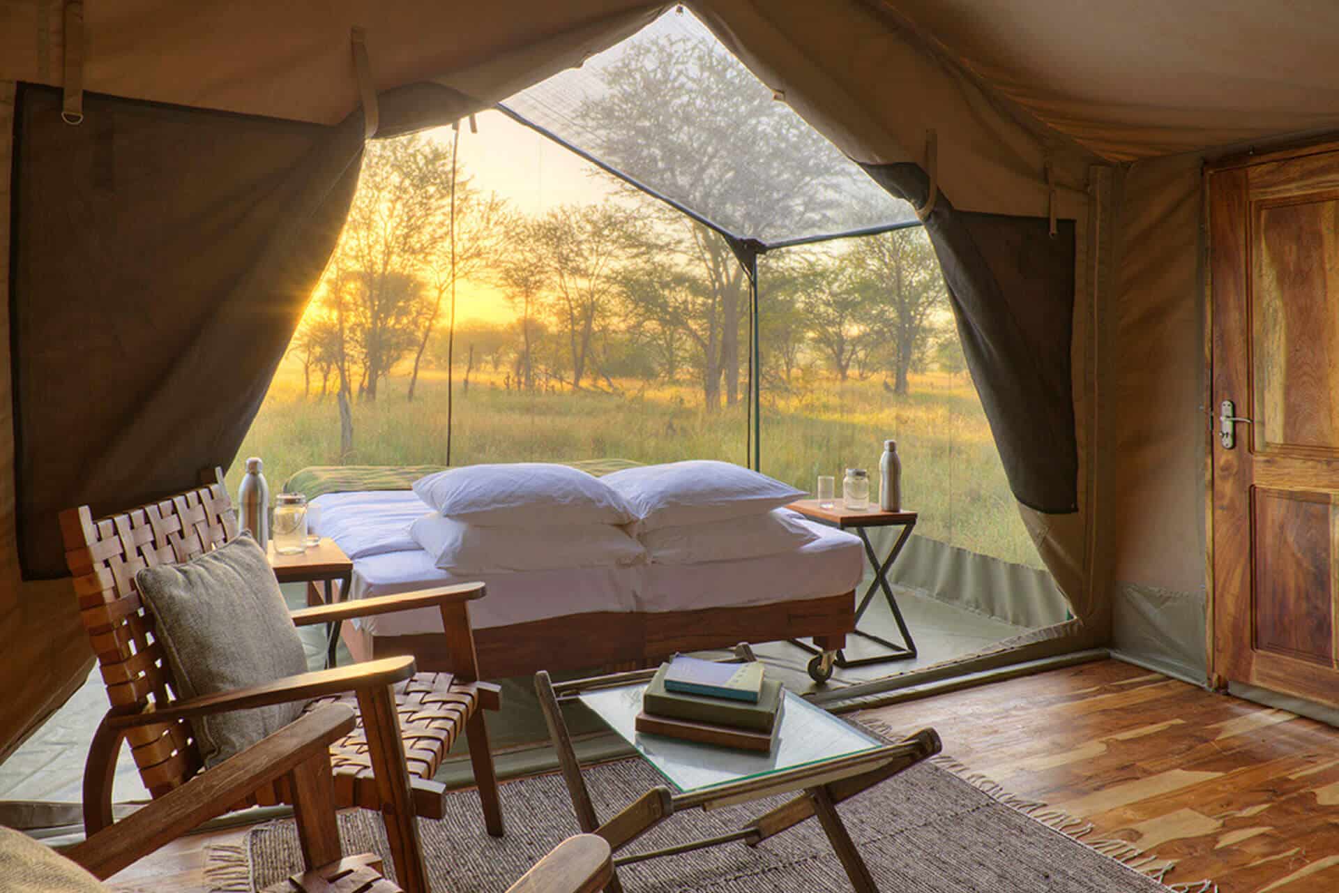 Operating from around mid-December to May, Serian’s Serengeti is a mobile camp set up in a prime position to witness the birthing season of the great wildebeest migration in March. Located on the southernmost extreme region of the grassy plains of the Serengeti, in the Ngorongoro Conservation Area, the six intimate tents offer a view over the wildebeest calving grounds. Serian’s is also very close to the Seketeti Escarpment – a 3,000 foot drop to Lake Eyasi – which is used as a fly camping spot for the more adventurous!