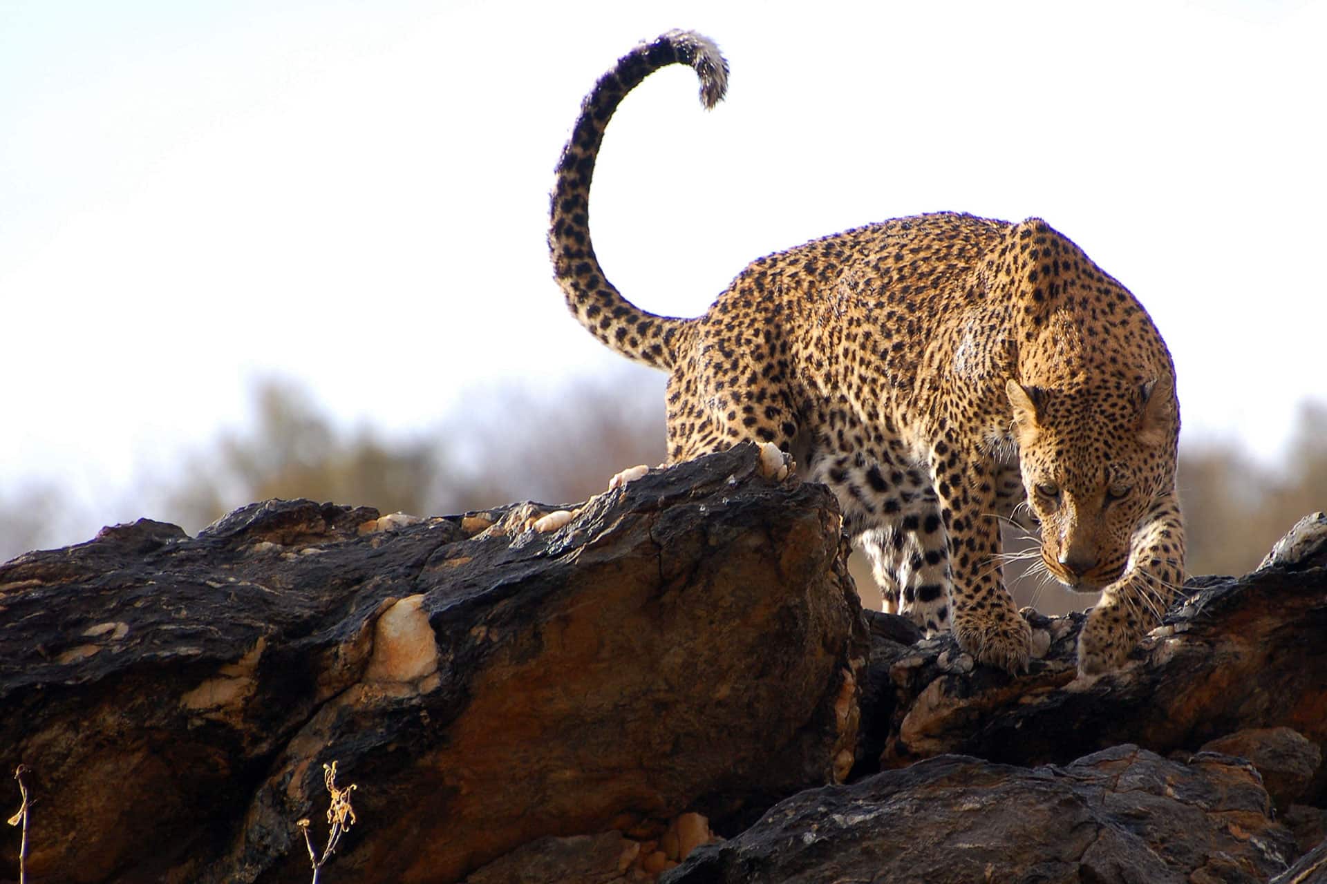 Leopards are agile creatures and exceptional tree climbers who can drag their prey – weighing up to three times their body weight – up into trees of over 20 feet (or 6 meters). They are often seen napping in trees, and sometimes even hunt from them. Most active between sunset and sunrise, these nocturnal felines have excellent night vision and are mostly found in the savanna grasslands, brush land and forested areas in Africa.