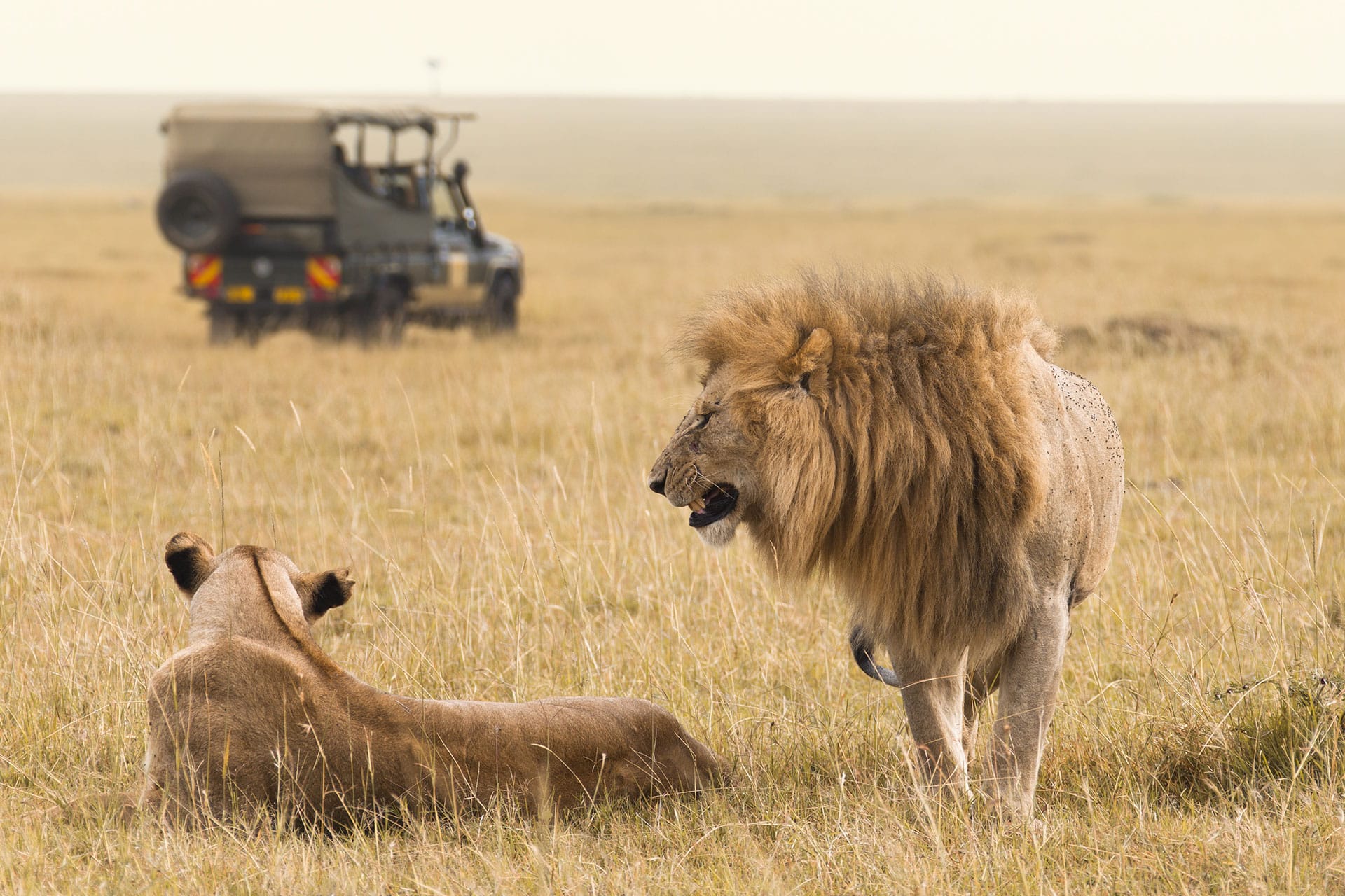 The apex predator of the wild, lions are an iconic symbol of Africa. Powerful and majestic, these tawny-coated carnivores are the most social of the big cats, and are mostly found living in large groups called prides. The male lion has a larger frame than the female, and wears a magnificent mane around his neck and shoulders.