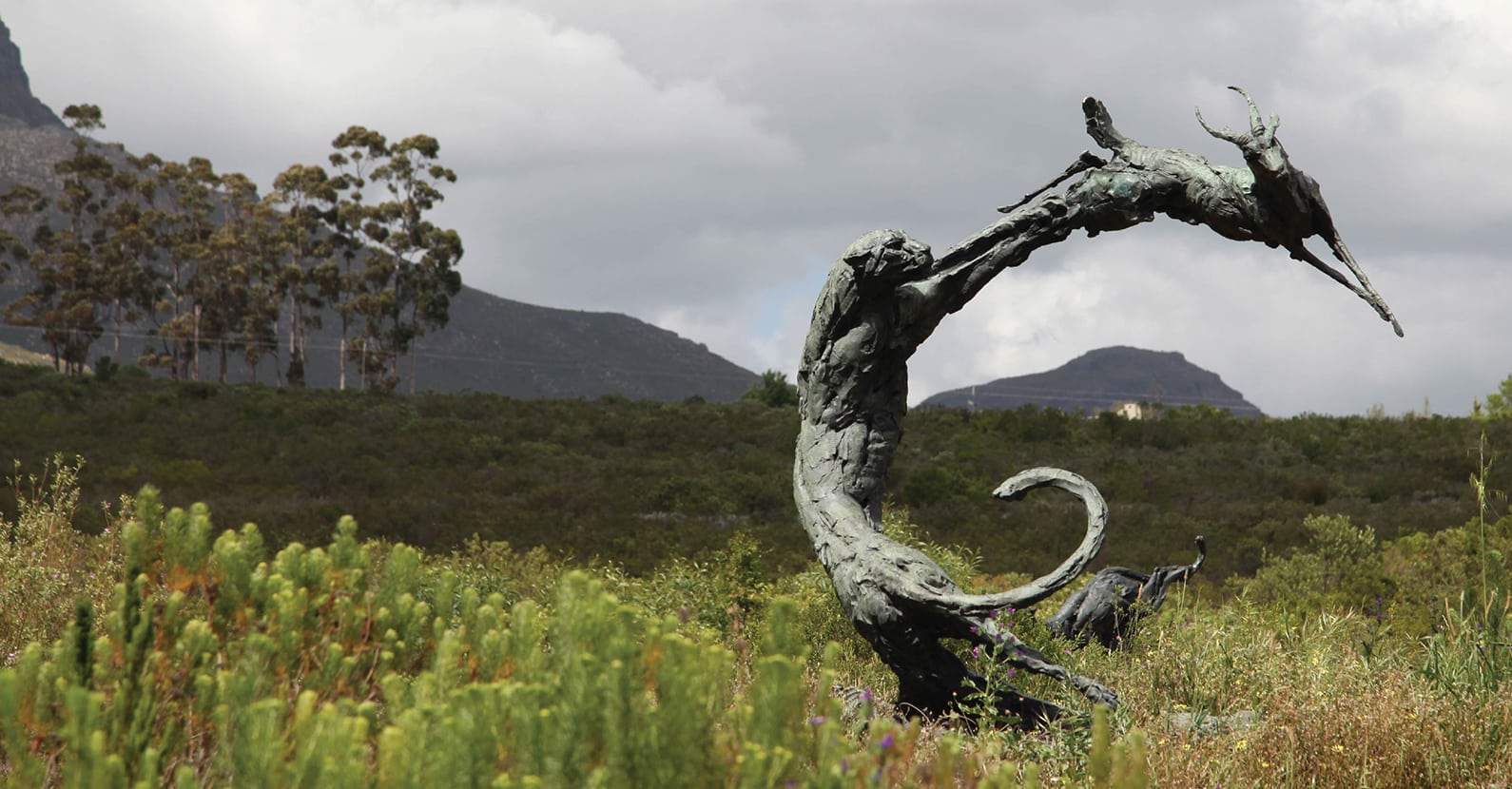 Hidden at the end of a farm road in the winelands of Stellenbosch you can find the Dylan Lewis Sculpture Garden. Dotted in between lush indigenous garden pathways, or standing boldly with the Stellenbosch mountains in the backdrop, the 60 odd sculptures harmoniously take on a life of their own within the seven hectare garden. On a sunny summer day feel free to meander through the gardens at your own pace opt for a private guided tour.