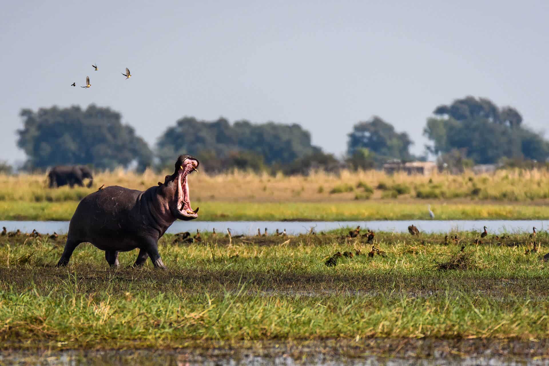 On the banks of Botswana, the famous Chobe National Park stretches an incredible 154,000 hectares, making it the third largest national park in Botswana. Made up of channels, islands, and riverine forests, the river is home to massive herds of elephant, buffalo, and hippo, as well as other concentrations of wildlife such as crocodile, giraffe, wild dog, the rare puku antelope, sable, and other buck, lions, leopards – all of whom come down to the edge of the river to drink, graze, and, of course, hunt. It is also a birders paradise, with over 450 species of birds found in the region, including giant kingfishers, bee-eaters, and the iconic African fish eagle.