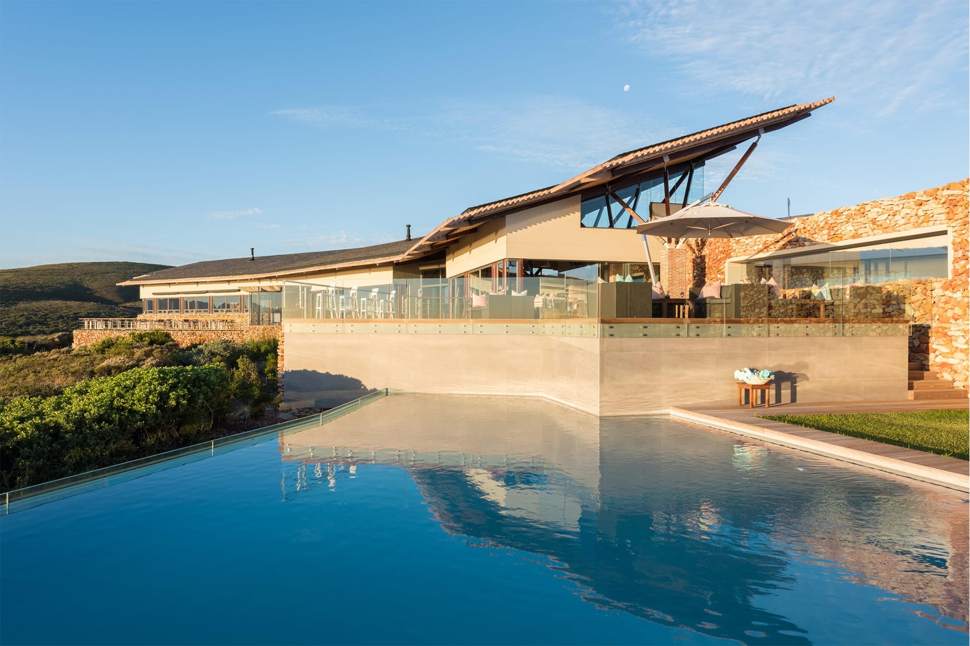 The main lodge boasts 180-degree ocean and fynbos views that truly take your breath away. The main lodge consists of an infinity pool, restaurant, wine cellar, reception area, lounge and cocktail deck where you can enjoy the sunset while sipping on your drink of choice.