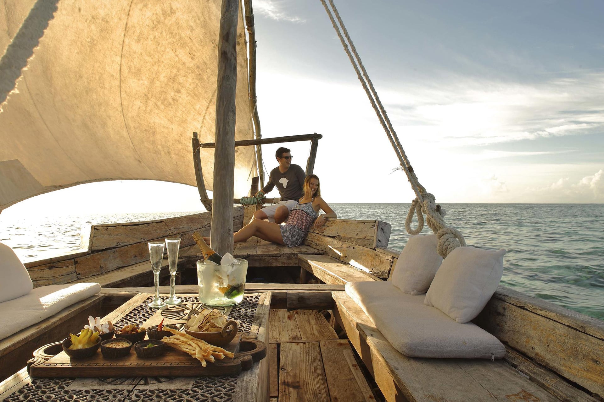 A traditional sunset dhow safari at Mnemba Island