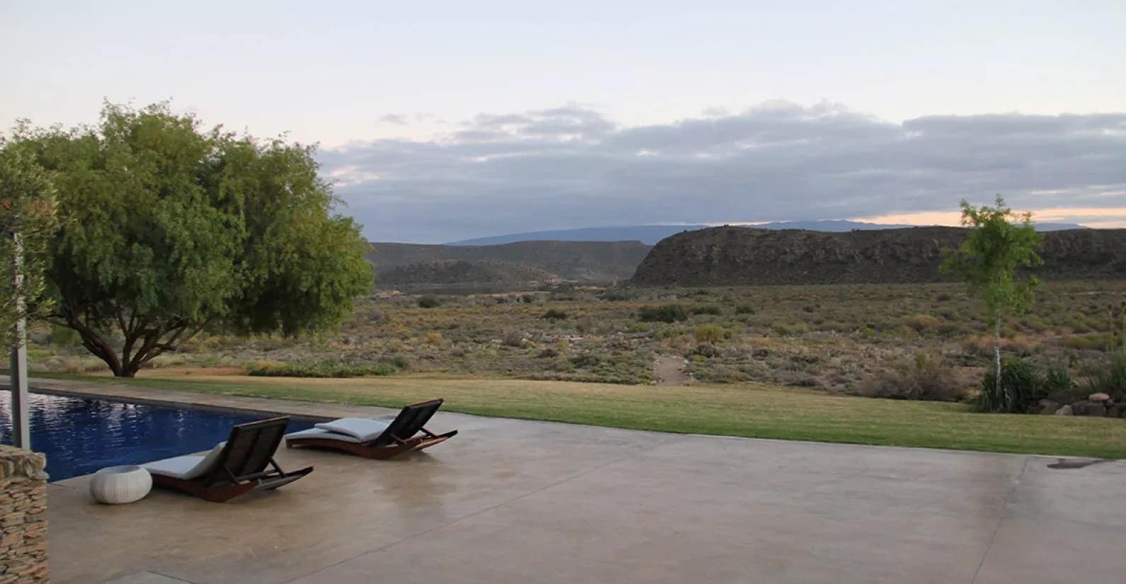 Our excitement started building up as the Gondwana Lodge began revealing itself to us in the distance – a beautiful thatched Karoo homestead surrounded by nothing but endless Karoo plains, mountains and open spaces. Our hostess, Marthsu, and her friendly staff awaited our arrival and immediately arranged our short check-in process and the allocation of our luggage to the rooms. We were then shown around the lodge and taken to the open-air restaurant overlooking the swimming pool and the boundless plains leading up to the Bellair Dam.