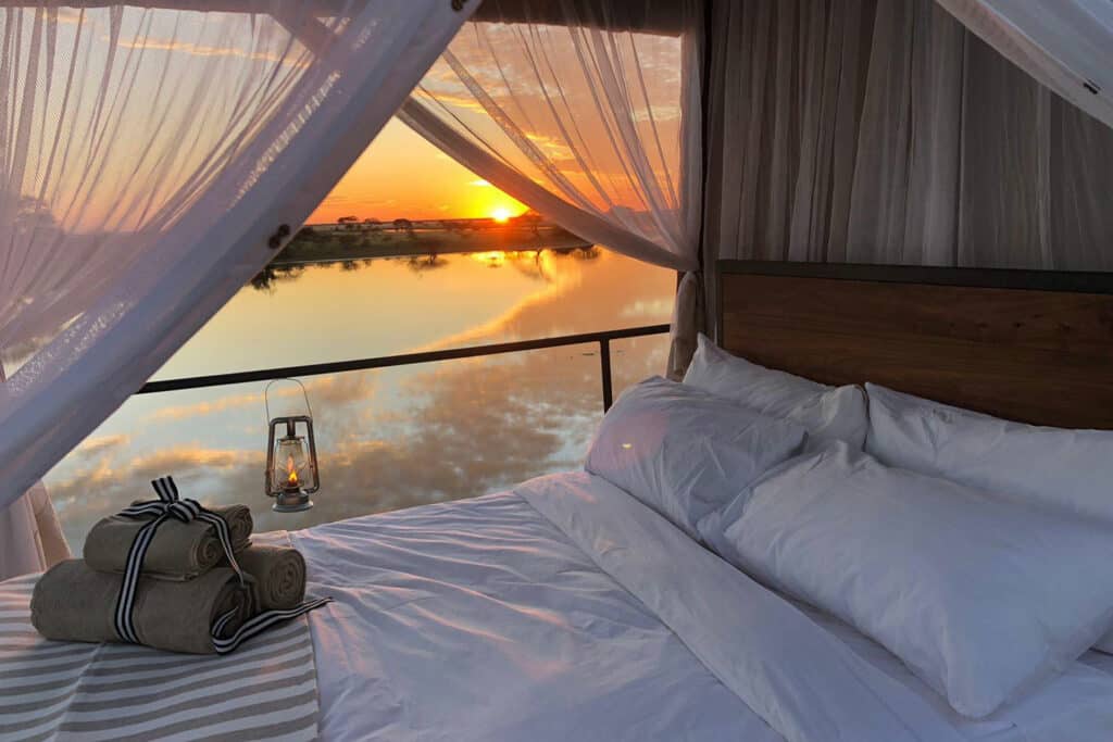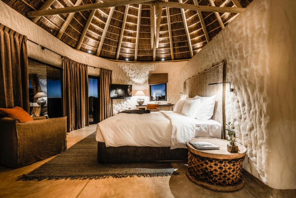 Wake up and enjoy a refreshing breakfast in Zannier’s tranquil wilderness, before meeting your guide for your transfer to Windhoek airport. Today, you will journey by private aircraft to Namibia’s premier safari destination, Etosha National Park. On touch down, a lodge representative will meet you and transfer you to Onguma The Fort in Onguma Game Reserve. You can enjoy time at leisure at this exclusive lodge while soaking up views of an active floodlit waterhole and the Etosha Salt Pans. Bordering Etosha National Park, Onguma The Fort gives you direct access to this world-class safari destination. Your time here can be enjoyed on morning and sunset game drives in both the private reserve and in Etosha. If you’re feeling adventurous, we recommend joining an armed guide on an exhilarating walking safari. A highlight of your time here will be a sleepout experience on Onguma’s Dream Cruiser. Custom built onto a landcruiser, this unique experience invites guests to spend a romantic night in the wilderness under the awe-inspiring Namibian night sky.