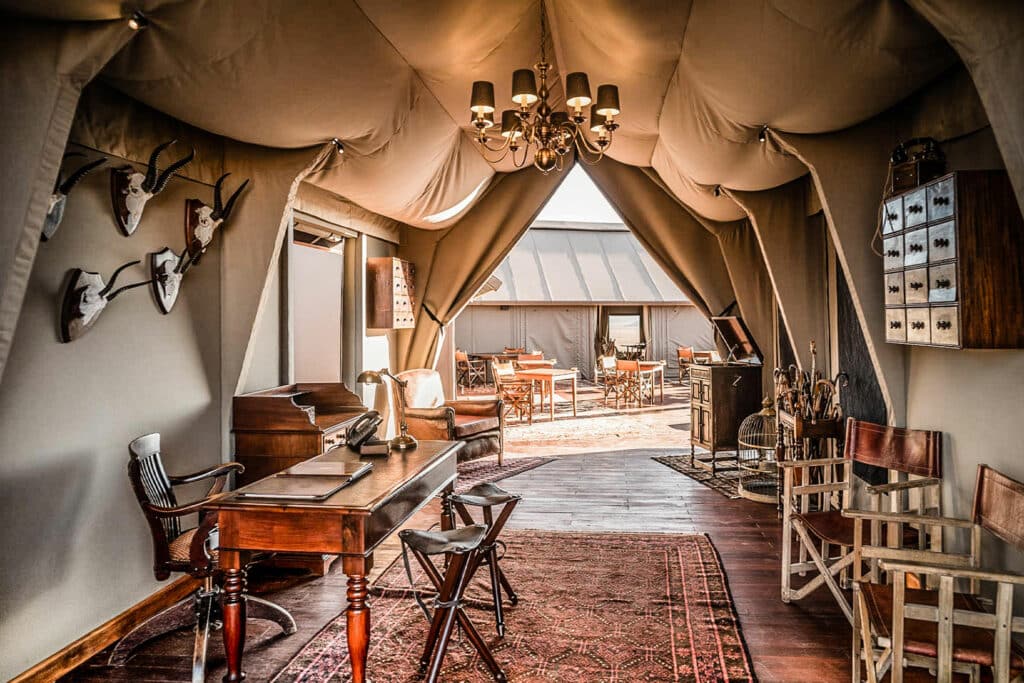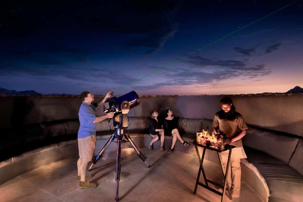 Your time at Sonop can be enjoyed on morning and sunset nature drives, unique horse riding excursions in the desert and expertly guided desert walks. Other activities include desert dining, yoga classes and e-bike rides. In the evening, you can make your way to the observation deck for a stargazing experience par excellence or snuggle up on a lounge chair at the camp’s open-air cinema. Night walks are also available on request.