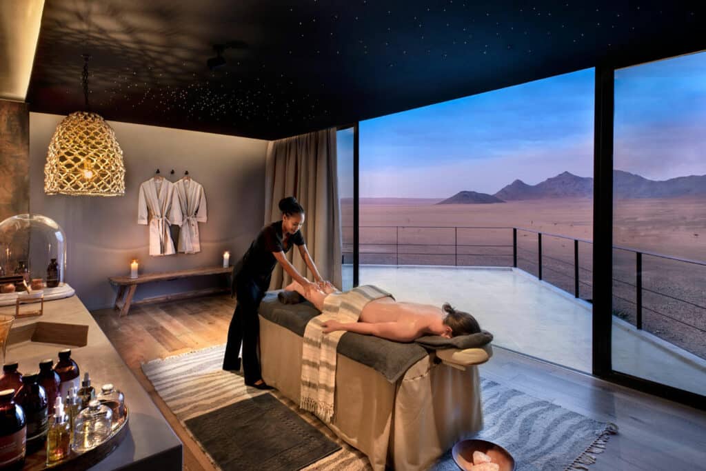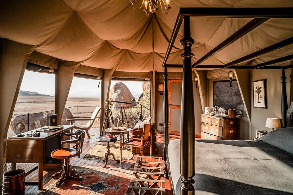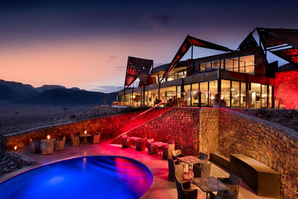 Located in the ancient Namib Desert, the remote and opulent Sonop features 10 tented suites that overlook 13,800 acres of untouched wilderness. The luxurious lodge harks back to the glamor of 1920s safari camps and offers a world-class spa, gym, heated outdoor infinity pool and cigar lounge. Guests can make use of the numerous telescopes available at the main lodge for a stargazing experience beyond compare.