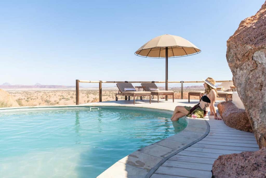 Hidden between granite boulders that make up the Damaraland landscape, Onduli Ridge is situated in a private concession and offers an exclusive desert escape. The lodge features only six suites that overlook an active waterhole and are each fitted with a star bed and private terrace. Guests can also enjoy the lodge’s swimming pool, spacious lounge, bar and dining area.