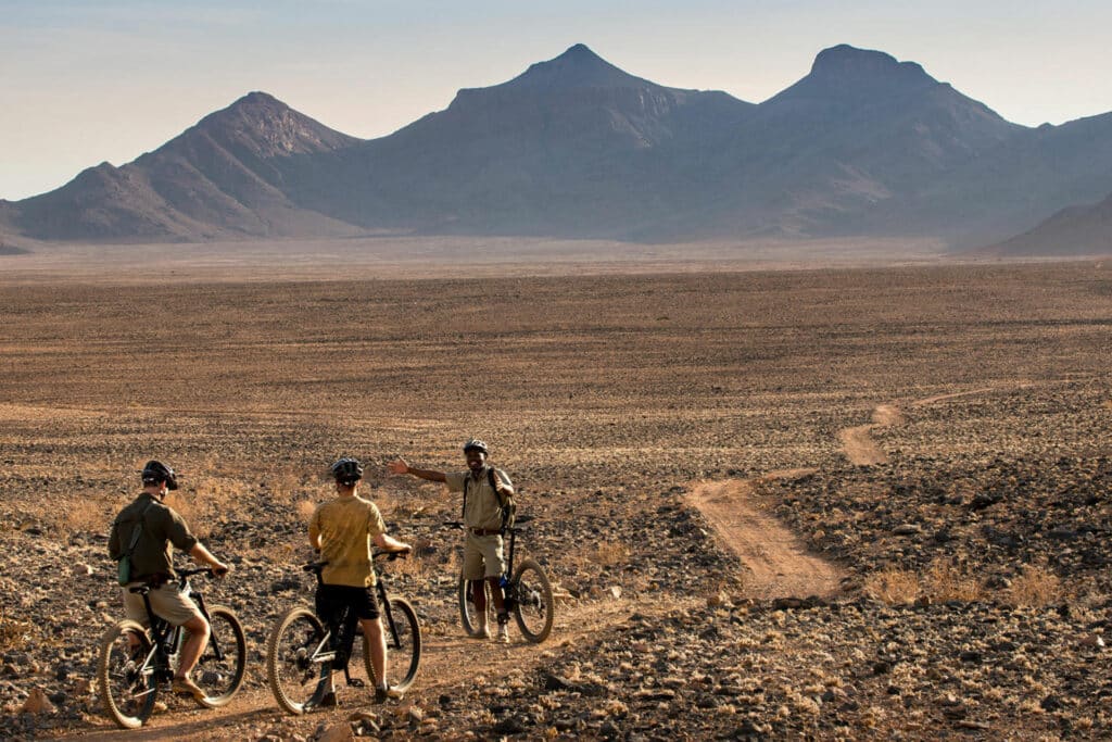 Discover the oldest living desert in the world on a scenic helicopter flight and guided excursions to the Sossusvlei, specialist-led 4×4 drives and walks and world-class stargazing each night with the resident astronomer. Activities include a living dunes experience, desert people experience, desert rock experience, big dune walk and you can use the e-bikes and do self-guided hiking.
