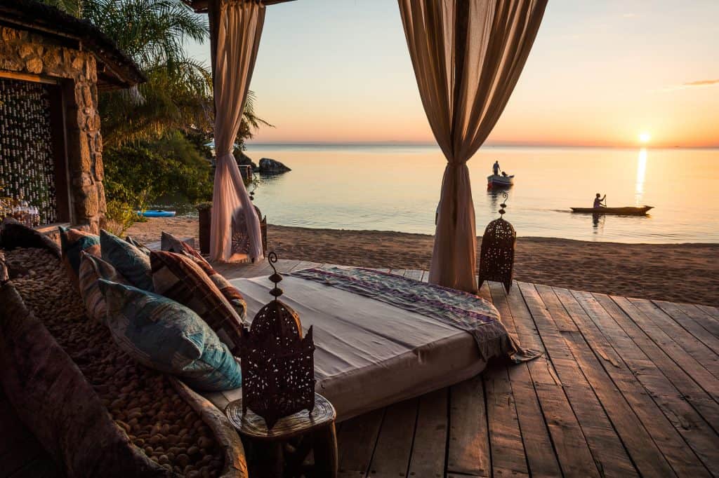 Wake up at your own pace before a filling, cooked breakfast at Qunu. After check-out, your driver will meet you to transfer you from the Saxon Hotel to OR Tambo International Airport for your onward flight to the capital of Malawi, Lilongwe. After collecting your visa at Lilongwe International Airport, you will be escorted to board a 1-hour charter flight to Kaya Mawa’s private airstrip, located on Likoma Island in Lake Malawi. Surrounded by white sandy beaches, the island has a lush vegetation consisting of baobab forests and mango trees. Recently voted the Best Beach Property in Africa by the Good Safari Awards, the Kaya Mawa beach lodge consists of 11 secluded rooms, each with a private, concealed deck overlooking the pristine waters of Lake Malawi. After check-in, you will have time to unpack and reboot at the lodge. Choose to fill your days with a number of water sports from exhilarating waterskiing to gentle kayaking or enjoy time at leisure at your private pool, on the beach or at the lodge spa. At sunset, visit the beachfront bar for a drink before making your way to the award-nominated restaurant at Kaya Mawa. Serving up fresh, healthy dishes the kitchen uses local organic products, homegrown herbs from the garden and fresh fish caught from the lake.