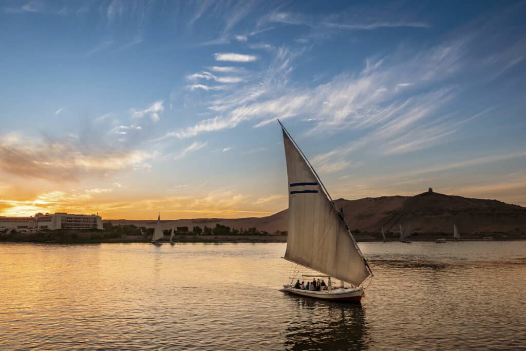 Today you will journey to Abu Simbel – an impressive rock temple on the southern border of Egypt dedicated to Pharaoh Ramses and his wife Nefertari. The giant statue has been standing for over 3,200 years and flanks the entrance to one of the most impressive temples in this country’s history. After some time exploring, you will be transferred to Movenpick Aswan Hotel on Elephantine Island. In the evening, you can look forward to a tranquil felucca sailboat ride on the Nile as the sun dips below the horizon.