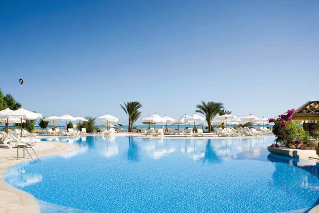 Located on an exclusive beachfront in El Gouna, Mövenpick Resort & Spa offers spectacular views of the Red Sea, surrounding gardens, and pristine lagoons. The resort features spacious rooms with modern amenities and private terraces, as well as several restaurants, three swimming pools, and a spa.