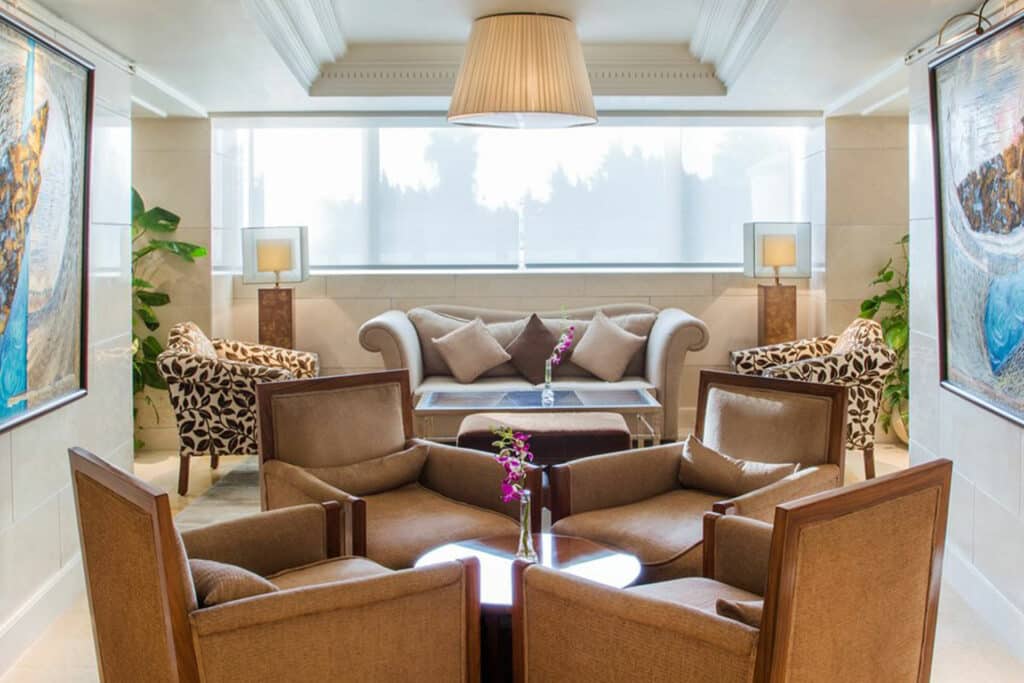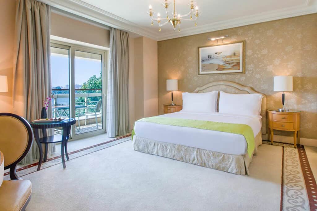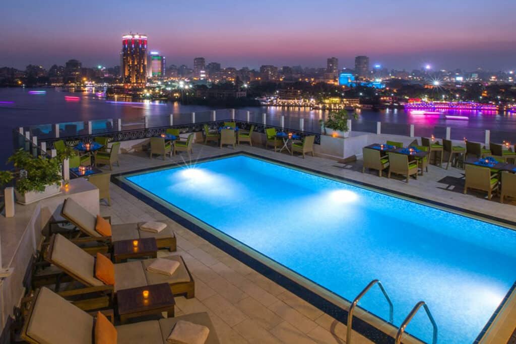 Located a short distance from Terminal Three of Cairo International Airport, this upscale hotel gives travelers easy access to both the airport and Egypt’s vibrant capital. The hotel features several on-site restaurants, a fitness center, spa and an outdoor pool.