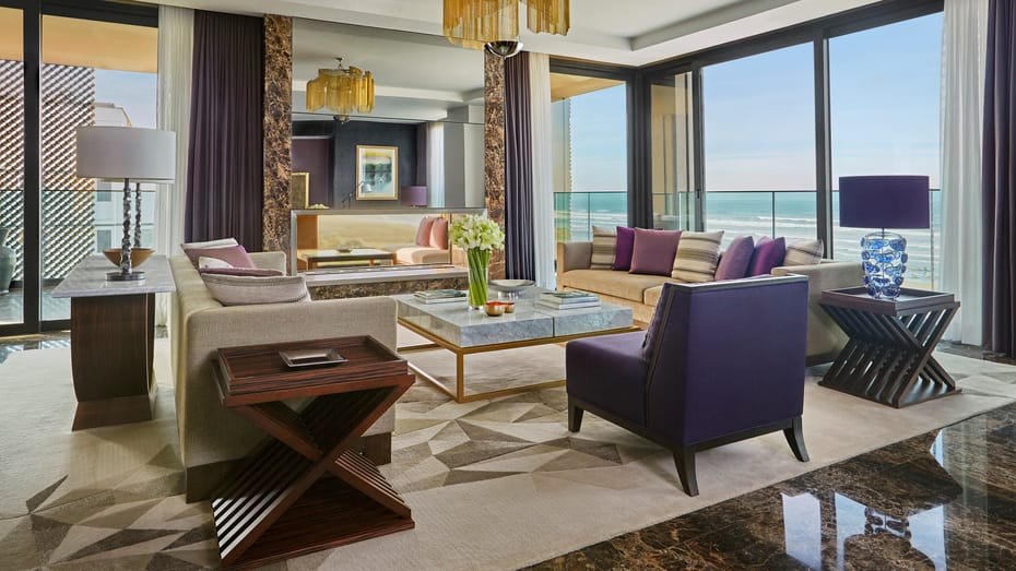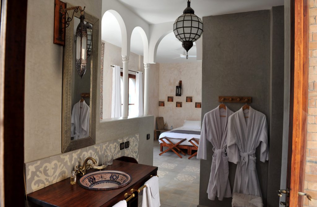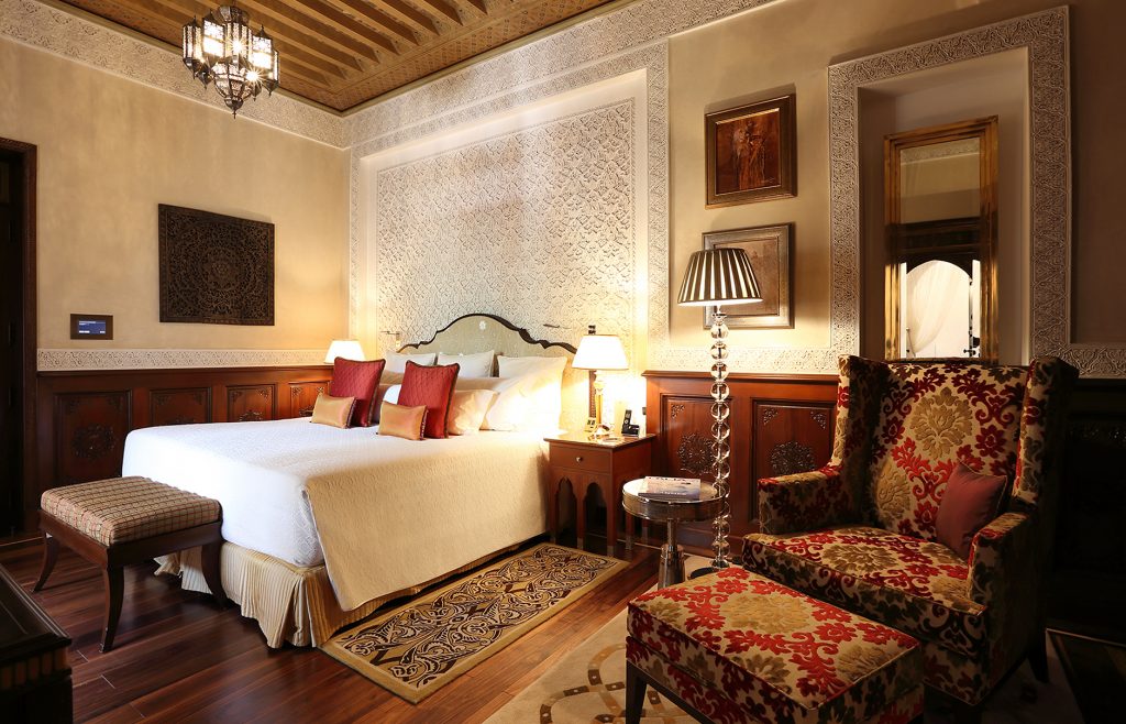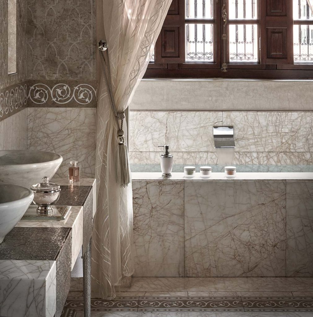 Overlooking the ancient city medina, the hotel’s whimsical interiors were created from original materials such as age-old handcrafted mosaic tiles and filigreed lanterns.