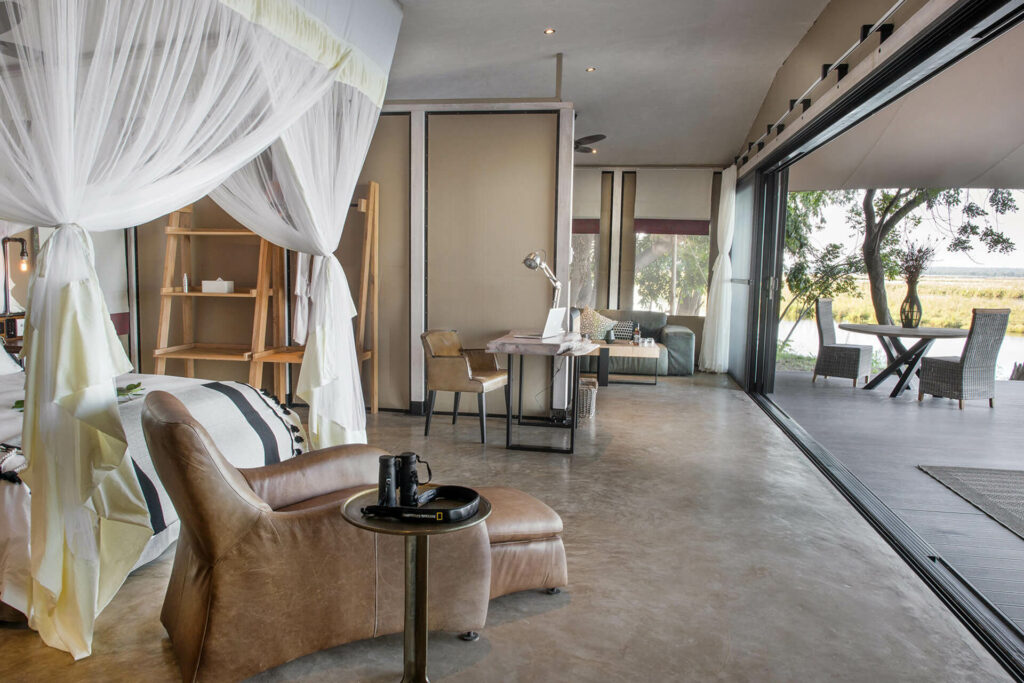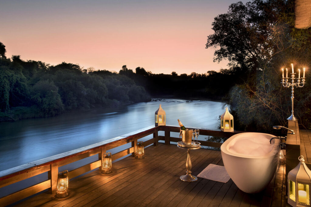 Tucked away on a private island, Relais & Châteaux Royal Chundu Zambezi Island Lodge offers the utmost privacy for discerning travelers. Each of the four villas are set between the baobabs and lead out onto a spacious private deck fitted with a riverfront bathtub.