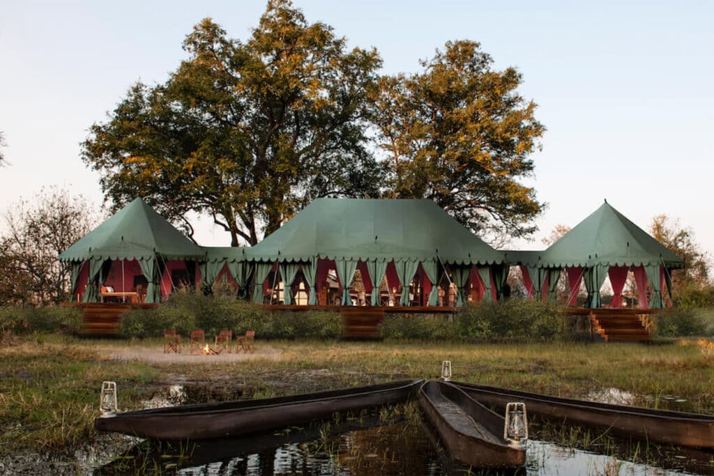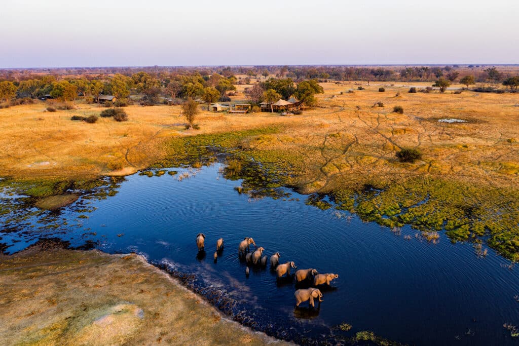 In the morning, you will enjoy a morning game experience. Thereafter transfer back to the local airstrip before boarding a light aircraft flight to a private concession in the northern Okavango Delta, renowned for its game-rich plains. The brand new and exclusive Duke’s Camp is located on the shores of a permanent lagoon so you are finishing on a high with unparalleled game viewing and extraordinary views between the camp’s indigenous leadwood and ebony trees. As the sun sets, flickering lanterns come alive to guide you along the raised wooden platform to your luxurious tent. Though Duke’s Camp is open all year round, you will only be able to partake in mokoro and boat activities from April to October. Exceptional land-based game viewing occurs all year with large herds of elephants and plains game making their way across the crystalline waters. During the warmer summer months we highly recommend guided bush walks, as well as spending some time enjoying the over 440 bird species that call this region of the Delta home. Night game drives are also on offer, allowing you to view remarkable nocturnal carnivores including serval and caracal. This is the ultimate lodge for this safari to Botswana.
