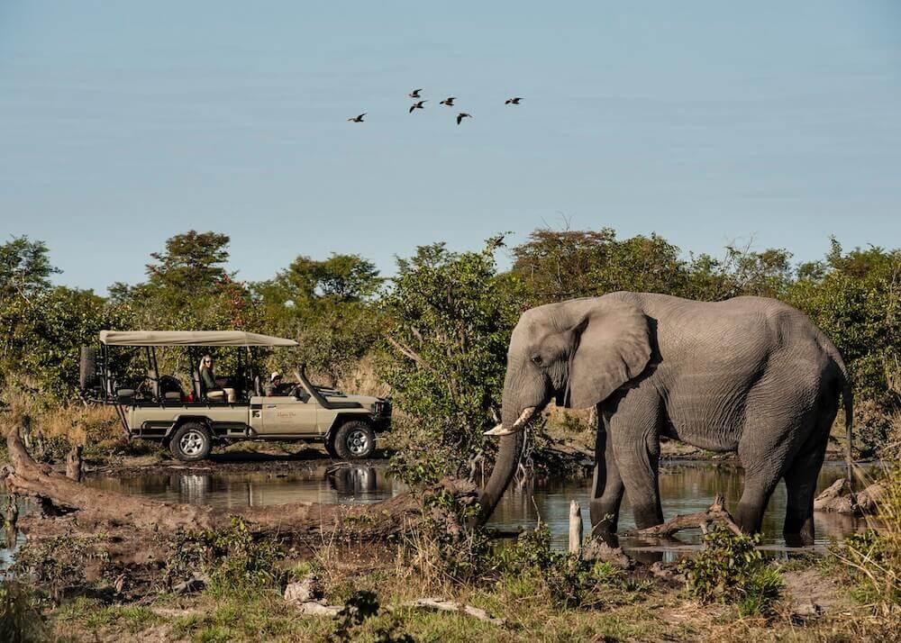 Enjoy armchair game viewing from the comfort of your terrace, enjoying the active waterhole that attracts a diverse selection of game right outside the camp. Activities with your dedicated ranger in this unique ecosystem include walking safaris, seasonal mokoro canoes, 4×4 game drives and seasonal motor boating. The area is renowned for its large concentrations of elephants, buffalo and many predators including lion and leopards.