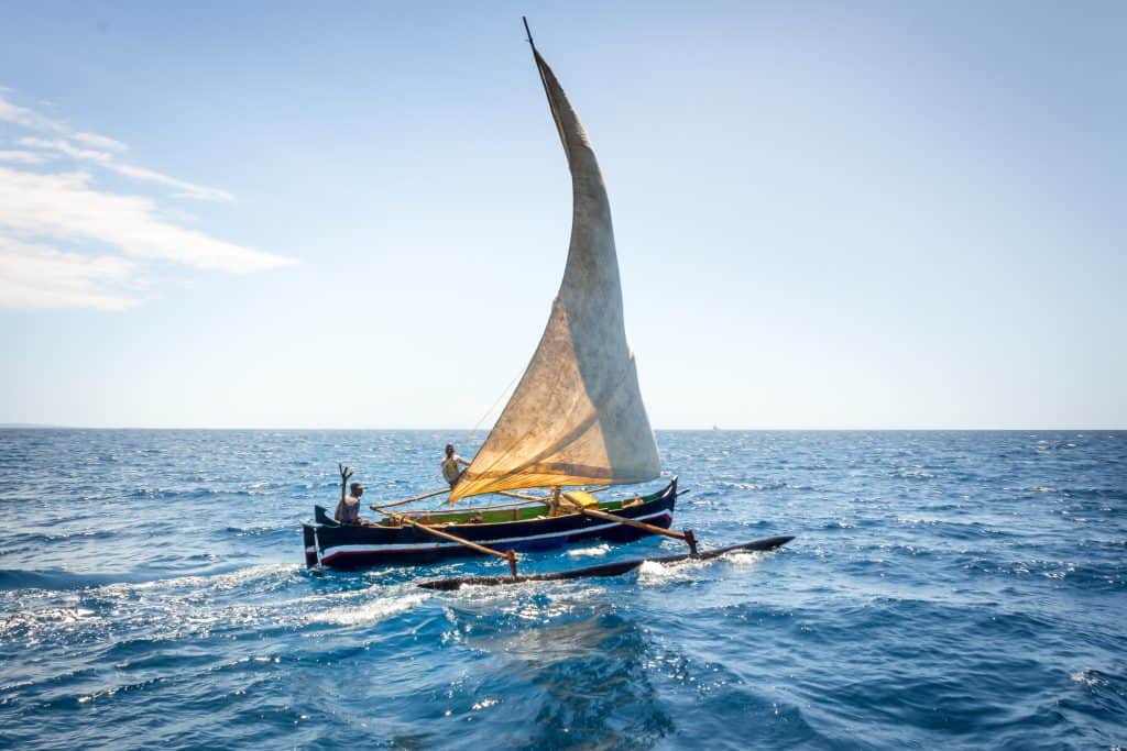 Tsarabanjina Madagascar Luxury African Safari. Sail boat over clear blue waters, luxury experience.