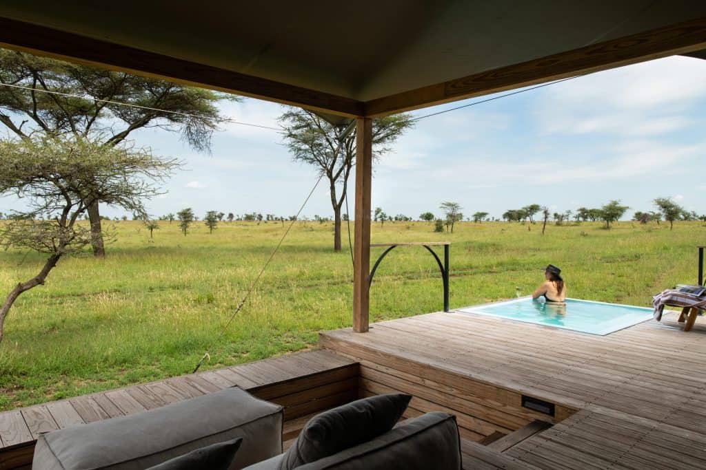 Located in the Central Serengeti, Lemala Nanyukie features spacious tents with a private wooden deck kitted out with an outdoor shower and a corner plunge pool to be enjoyed as you see fit.
